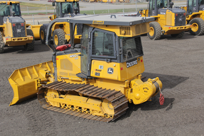 The John Deere 450J equipped with Allied H4A winch. The same winch fits 550J/K and 650J/K. With a different mounting bracket and driveline, it also fits the 700H/J/K. |