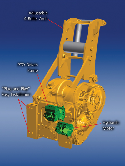 The H4A features Self-Contained Hydraulics (SCH) design. The hydraulic pump and motor are contained inside the winch frame for protection and integrity, and are isolated from the dozer hydraulic system. Winch power comes from the John Deere PTO output. |